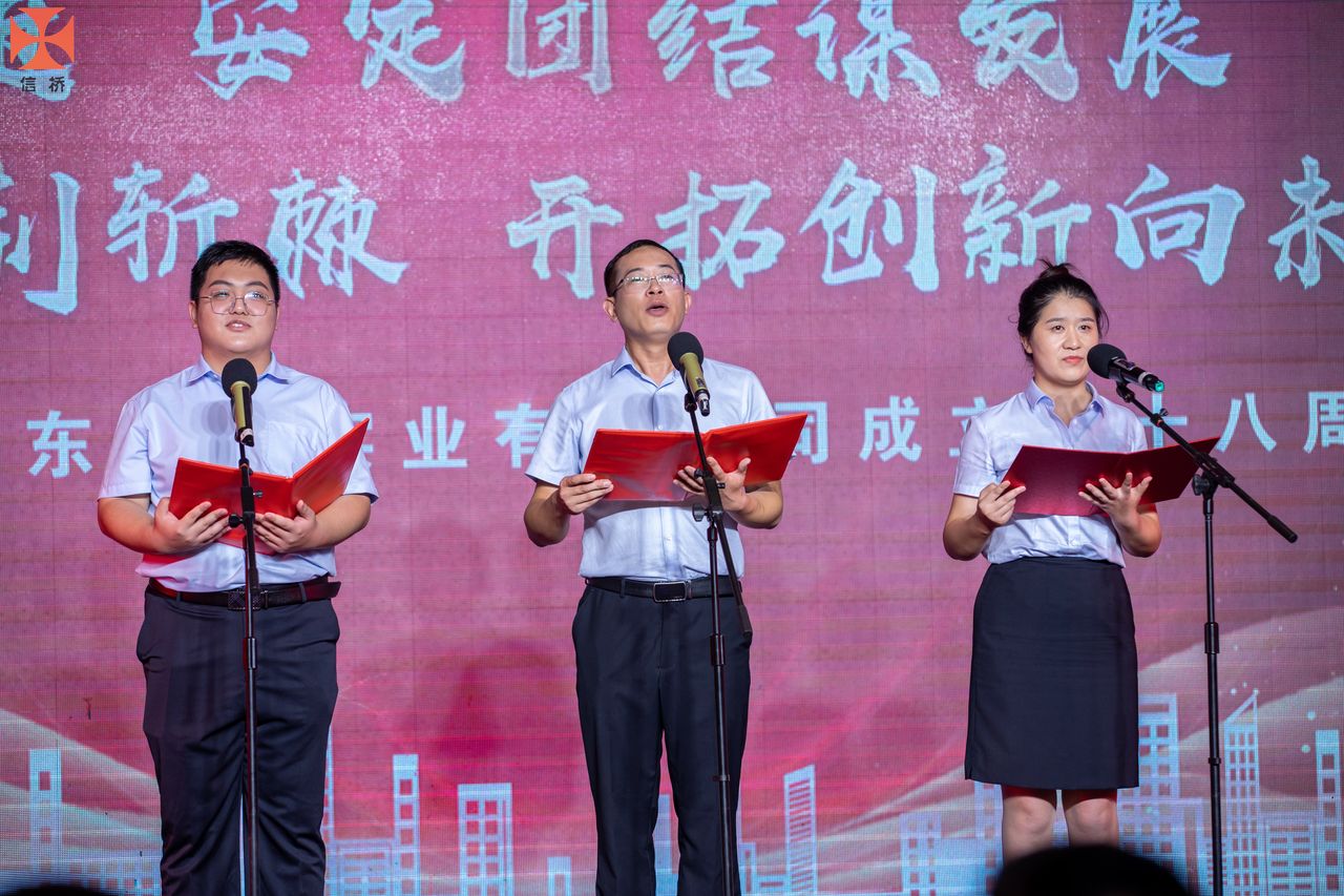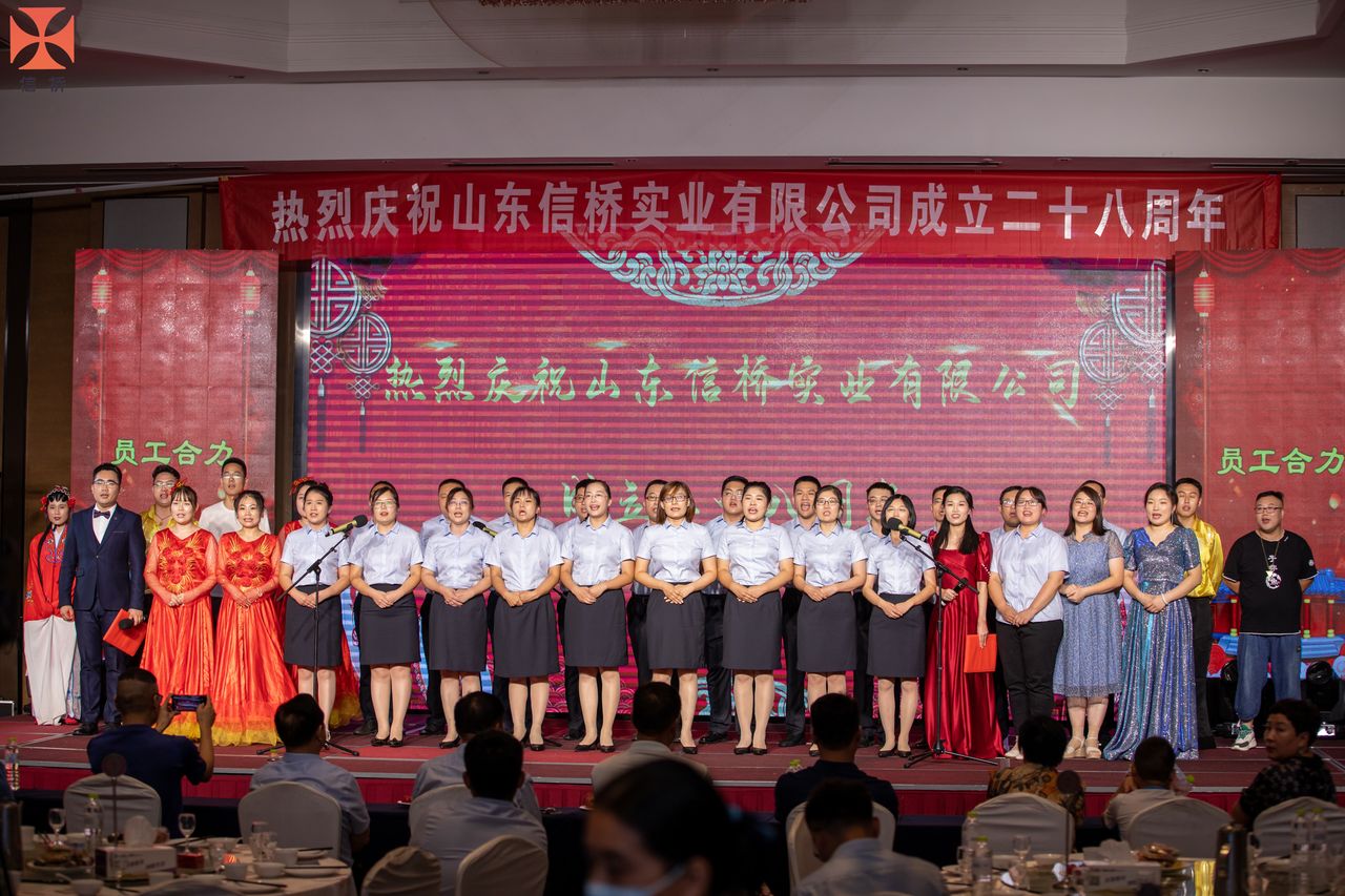 歲月如歌,風霜如畫,二十八年彈指一揮間,山東信橋?qū)崢I(yè)有限公司(以下簡稱山東信橋)迎來了二十八周歲的生日。二十八年來,信橋人在激烈的市場競爭中奮力拼搏、砥礪前行,接受了市場風風雨雨的洗禮,取得了累累碩果。為了慶祝這一特殊的日子,2022年8月8日,以“激流勇進,安定團結(jié)謀發(fā)展 披荊斬棘,開拓創(chuàng)新向未來”為主題的山東信橋二十八周年慶典活動在寶盛大酒店舉行。