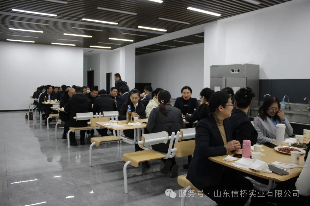 會議結(jié)束后,所有的信橋員工在公司餐廳聚餐進(jìn)行年會慶祝,現(xiàn)場氣氛熱烈歡快。